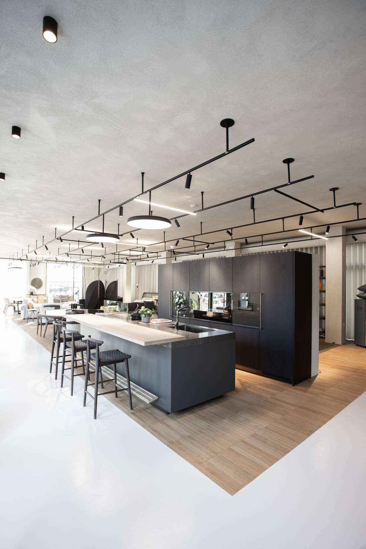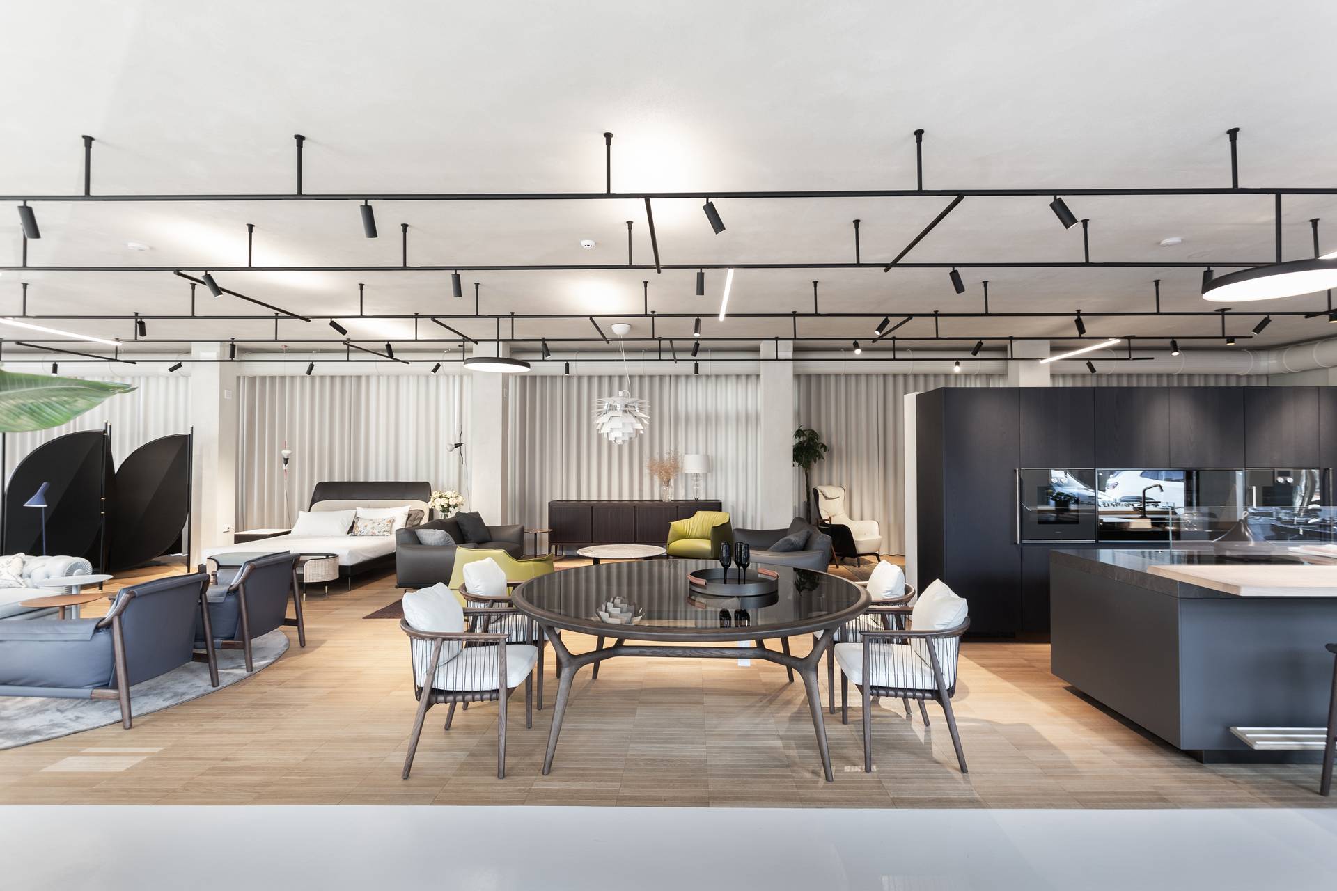 E stato pianificato un layout ben organizzato per massimizzare lo spazio espositivo e garantire l’esplorazione delle varie proposte di arredo: il piano terra dedicato a zona uffici, zona espositiva e vetrine, il piano superiore dedicato ad un grande spazio espositivo multibrand.