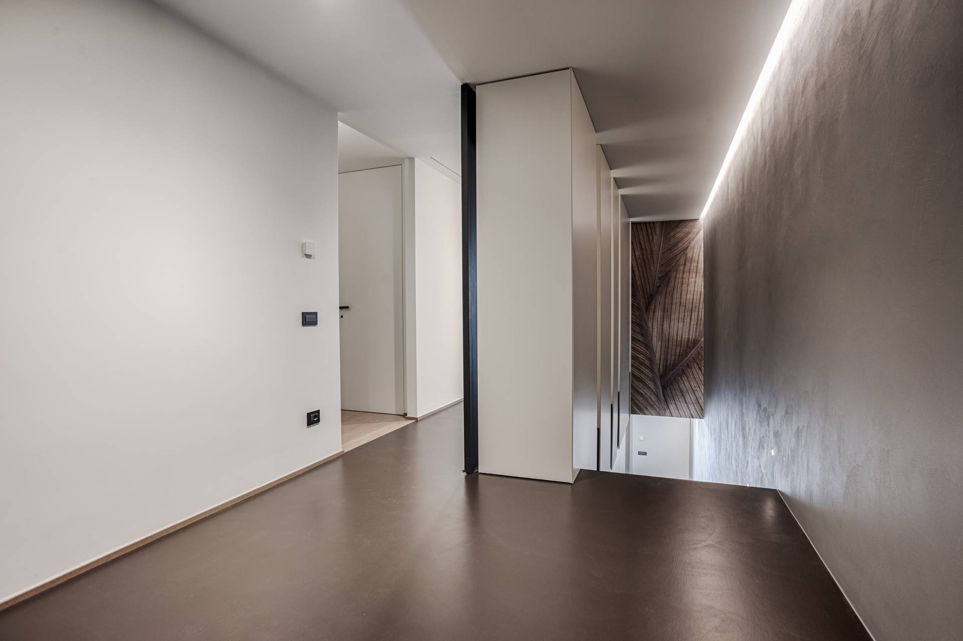 Ogni aspetto è pensato e in dialogo con l’altro. I materiali scelti, come legno, pietra e resine, abbinate ai colori neutri, accolgono mobili e soluzioni realizzate su misura creando interni sereni e sensoriali che sono destinati a incuriosire e affascinare, trasmettendo bellezza, semplicità e comfort.